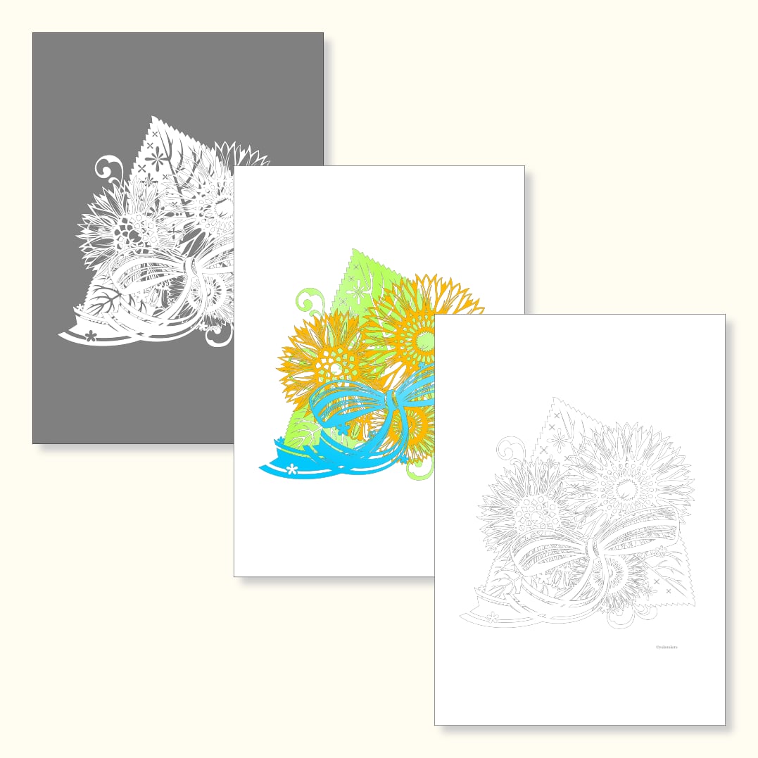 販売を終了した重ねる切り絵キットのデザインが「ぬりえ図案」で再登場!